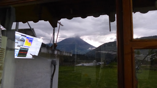 I’m living in the middle of nowhere! I have just started a week’s work at the OVT (Observatorio del Volcan Tungurahua). This is an observatory belonging to IGEPN exclusively dedicated to monitoring the behaviour of Tungurahua, an active stratovolcano whose name means Throat of Fire in the local Kichwa language. Tungurahua towers over the local landscape; from the window of OVT, 8km south of the village of Patate, I can see it clearly through vertiginous valleys decked with fields and crops.