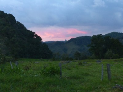 Despite our misfortune, I’m already in love with Colombia. Just what is it about this place? I really liked Ecuador, its people, landscapes, history; and yet there’s something about its big sister to the north that is just irresistible. Like the people here, the country seems to have the ‘it’ factor: the wink, the attitude, the flicker of a smile on the lips that draws you in further. My suspicions of Colombia’s magic are confirmed that evening, when we pitch camp. We arrived in Salento in the afternoon, and have grown tired of the haggling and hawking at the stalls in the village square. So we leave to begin a lonely pilgrimage north on a small road out of town. We have seen signs for the Cocora Valley and we hope to find solace, if not shelter, under the fronds of a slender wax palm. After a kilometre walking down the silvering road that twists like a live trout, we pass a sign painted in white acrylic that points the way ‘Al Rio‘. Not ones to pass up an impulse, we follow it towards the river. We pass into a narrow, tranquil valley, empty of wax palms but full of sweet green grass and tall eucalyptus that in the twilight breeze paint the setting sky in shades of pink and lilac. Finally we have found tranquillity. The night is mostly cloudless, and from the comparative dark of our camping spot, hidden under a motherly pine, we watch as capricious fireflies compete with the stately stars to capture our attention.